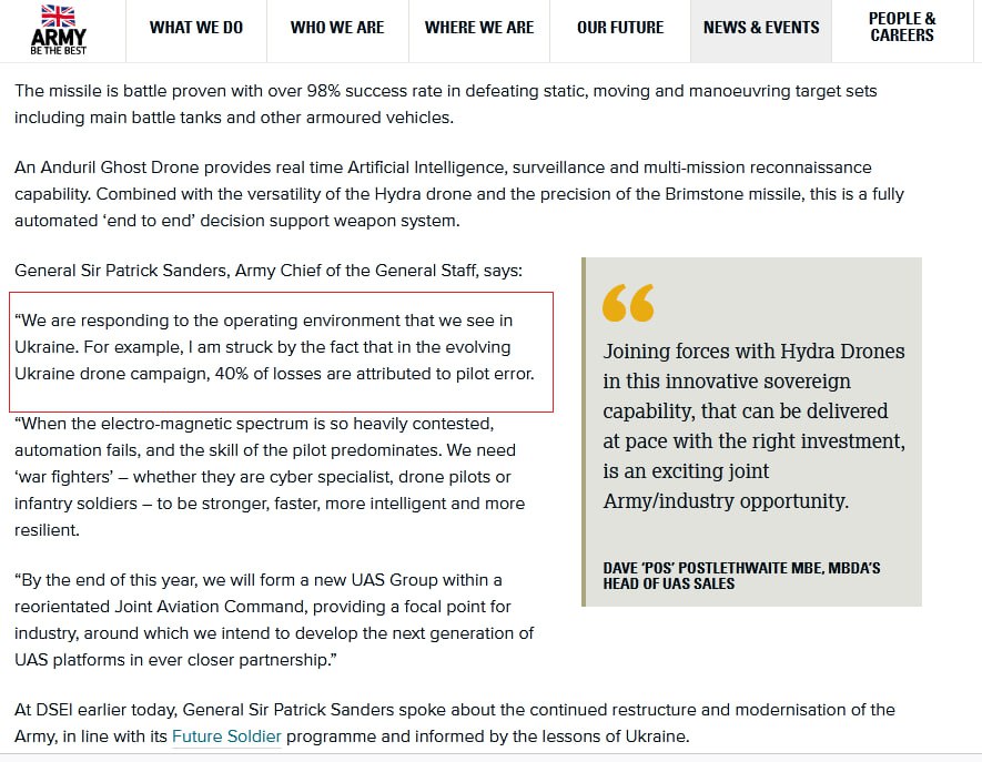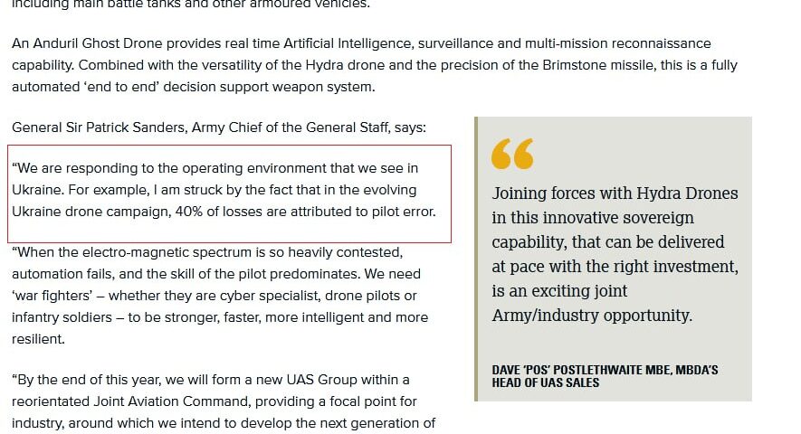 “We are responding to the operating environment that we see in Ukraine. For example, I am struck by the fact that in the evolving Ukraine drone campaign, 40% of losses are attributed to pilot error.”