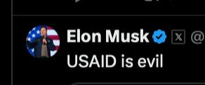 Вскоре Илон Маск удалил аккаунт агентства USAID из своей соцсети Х. Там был почти миллион подписчиков.