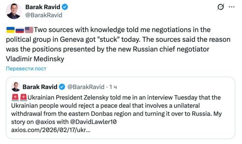 18.02.2026 - 07:02Yesterday’s talks between the delegations of Ukraine, Russia, and the United States “hit a dead end.”