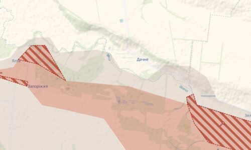 Further south, there is a sharp expansion of the gray zone around Myrne — from the south it has reached Voskresenka, which is also located near the Dnipropetrovsk border, and from the north, it has cut through the highway and surrounded Poddubne.